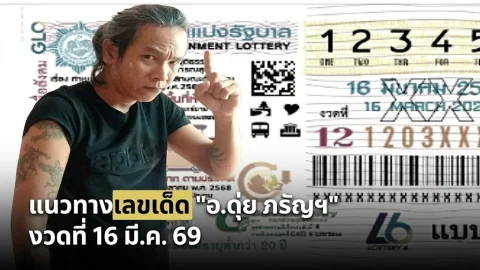 แนวทางเลขเด็ด "อ.ดุ่ย ภรัญฯ" งวดประจำวันที่ 16 มีนาคม 2569